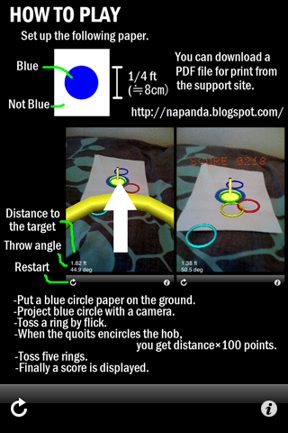Toss virtual rings by flicking your finger onto a blue circle (drawn on on a white page). The circle is overlaid with an upright peg. Try to hit the peg. The farther the distance – the higher the points you score.