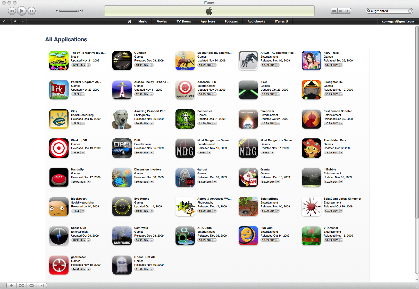 In my pursuit of the ultimate augmented reality game – 2009 was a landmark year. From 0 to 30 selling games in 4 months is nothing short of stunning (and makes my 2010 prediction of 10x more AR games – not too bold…;)