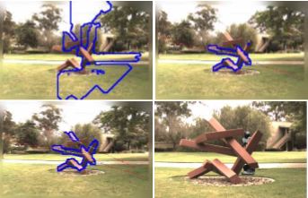 video of last year's demoA demonstration of a wearable robotic system that uses an extended version of the parallel tracking and mapping system by Klein and Murray from ISMAR 2007. This extended version allows multiple independent cameras to be used to build a map in unison, and to also create multiple independent maps around an environment. The user can explore an environment in a natural way, acquiring local maps in real-time. When revisiting those areas the system will select the correct local map and continue tracking and structural acquisition, while the user views relevant AR constructs registered to that map.