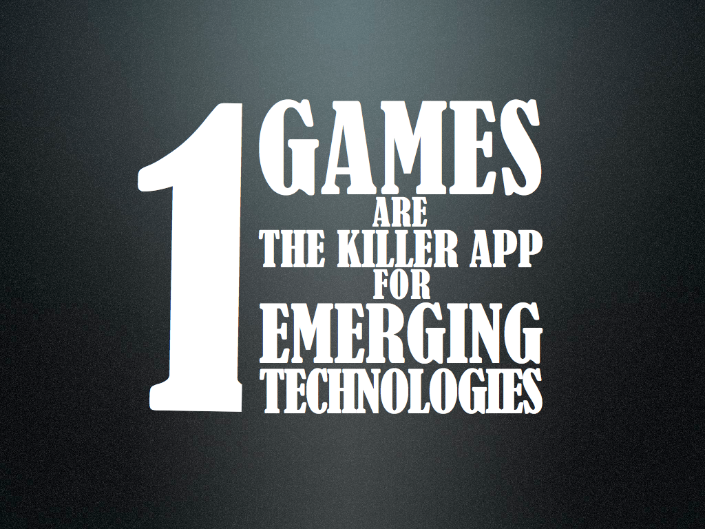 Games have a history of pushing the envelop of new technologies and bringing new inventions to the masses: computer graphics, memory, silicon, screens, 3D animation, interactive story telling, immersion…and the list goes on and on. What made GPUs popular and drove its development? Games! First mainstream handheld electronic device? Games! When PCs were first introduced to consumers how were they marketed? As more capable than video game consoles…